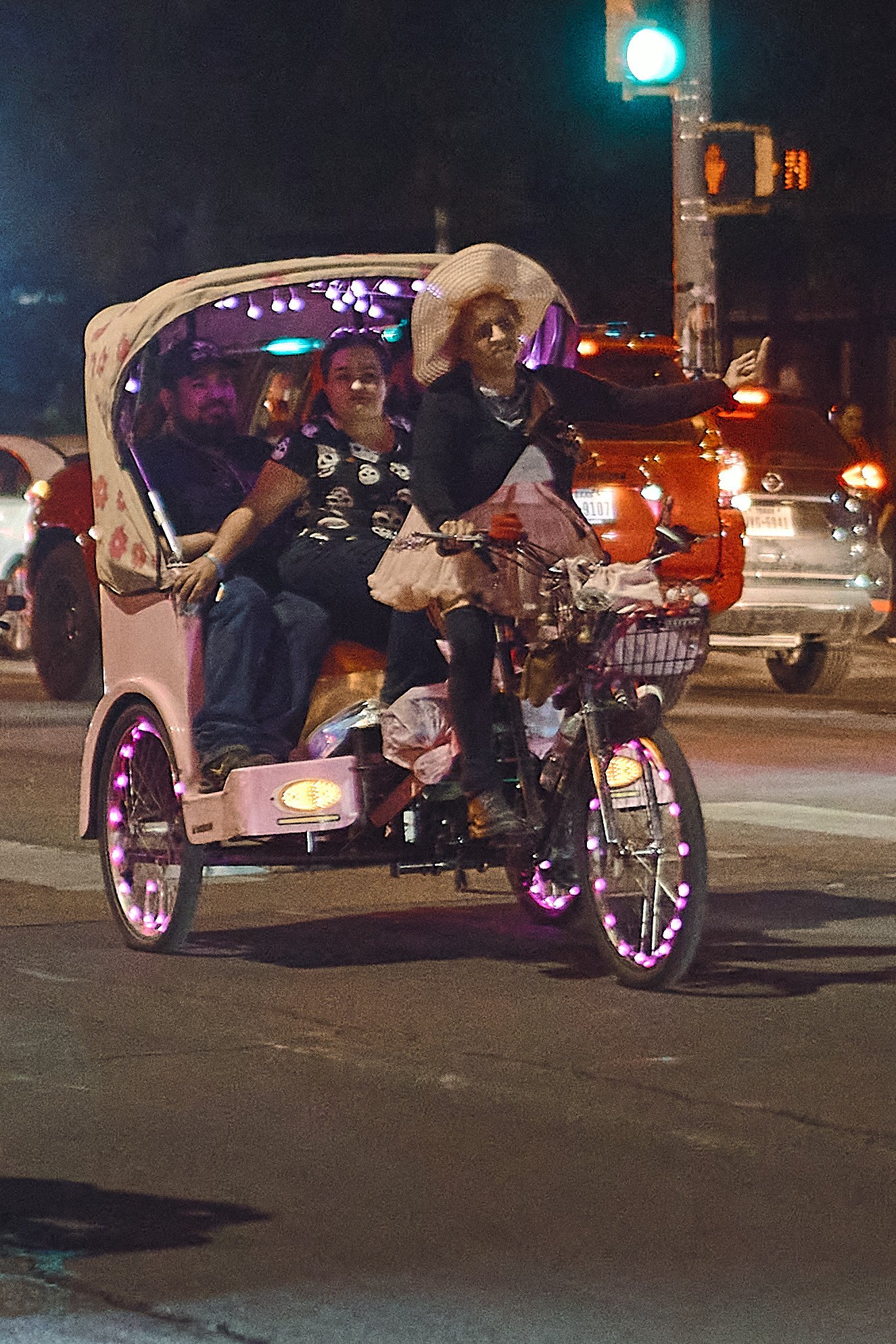 The crowds and pedicabs were moving fast. I love low-light photography, but don’t have much experience doing it with shutter speeds over 1/125 sec. And I hadn’t even tested the decade-old 55mm ZA’s autofocus capabilities in low light. I missed focus and exposure a lot.